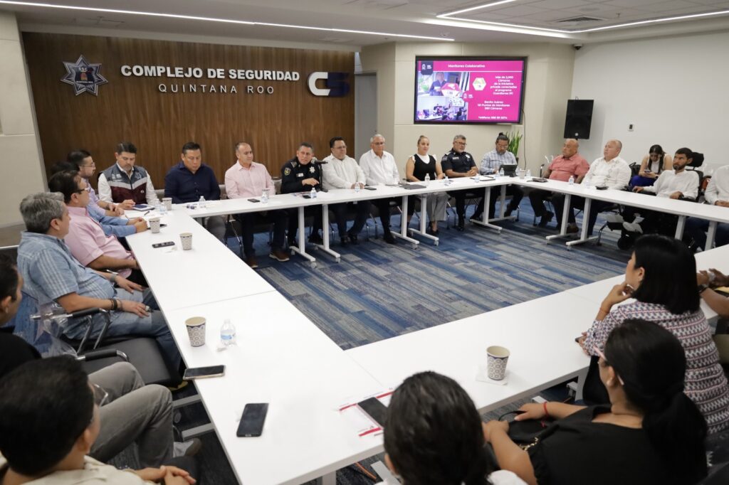 En la mesa de trabajo, estuvo presente el Contralmirante Julio César Gómez Torres, Secretario de Seguridad Ciudadana; Raciel López Salazar, titular de la Fiscalía General del Estado; Jaime Padilla Barrientos, titular de la Secretaría Municipal de Seguridad Ciudadana y Tránsito de Benito Juárez, entre otras autoridades; así como Julio Villareal Zapata, presidente de la CANIRAC en Cancún y en Quintana Roo y varios de sus integrantes; quienes escucharon las acciones y estrategias que se han implementado en cada una de las instituciones, así como los resultados obtenidos y la coordinación que existe entre los tres niveles de gobierno para la construcción de paz.
